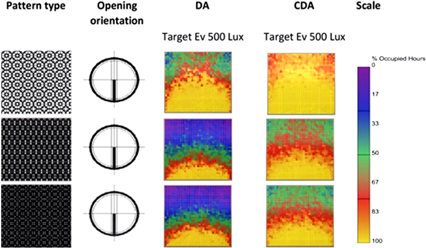 Following, Some results and analysis of Daylight Autonomy (DA) in “Abu Dhabi”, are presented as an example: