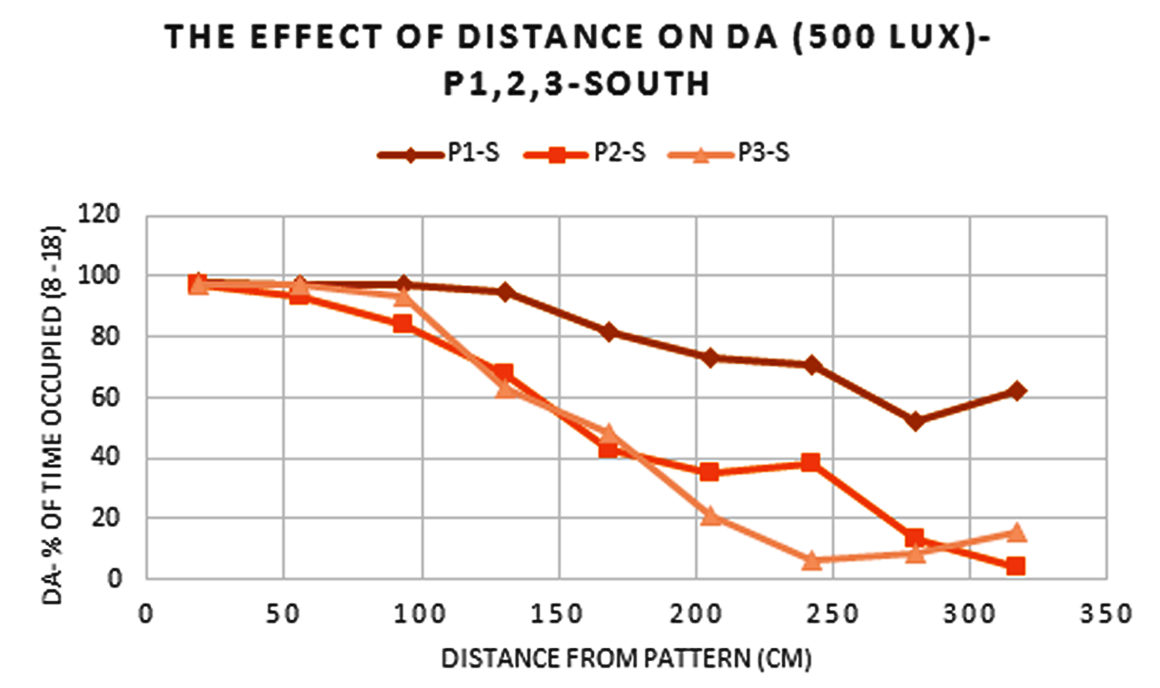 Daylight Autonomy, horizontal distance from window for south orientation