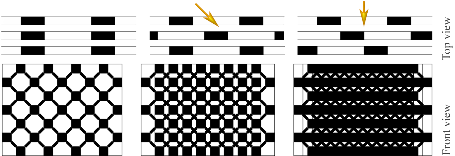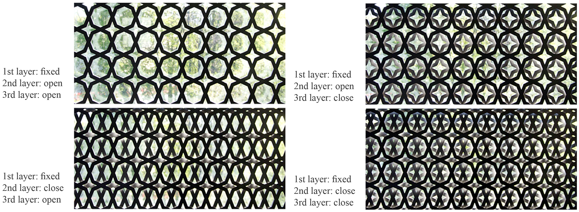 • Main structure is made of three movable layers so as to create different opening sizes to control daylight flux