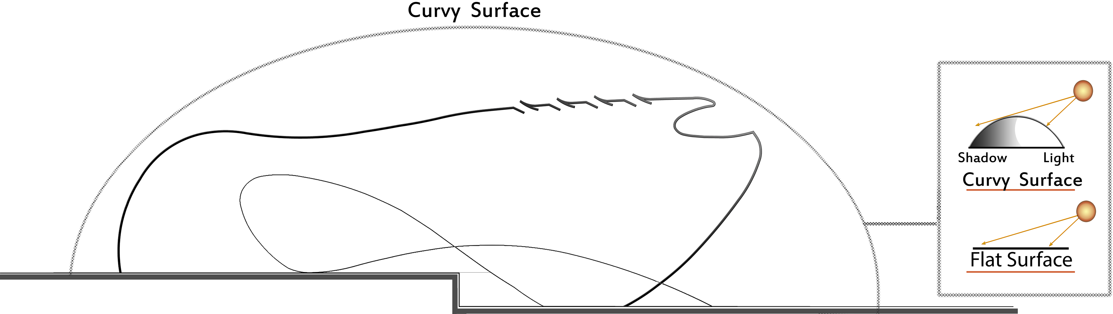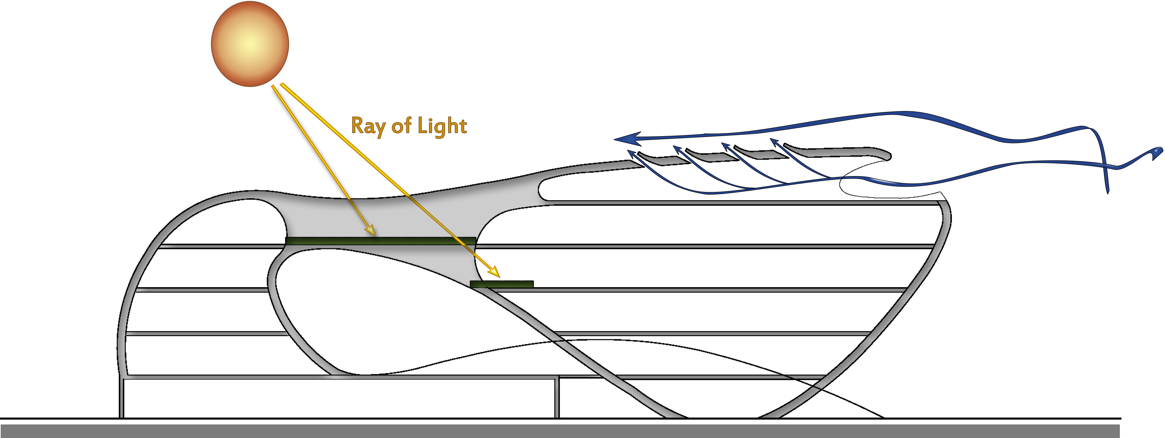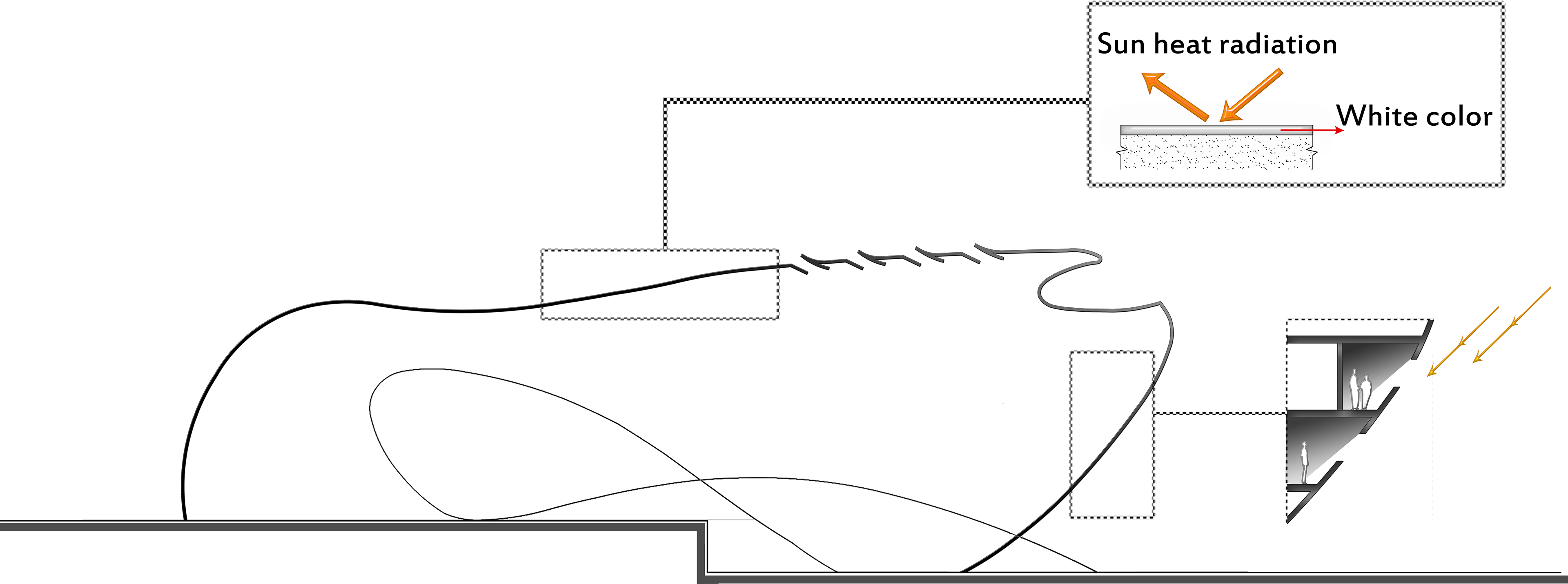 Heat transfer reduction by using curved planes which create twilight.