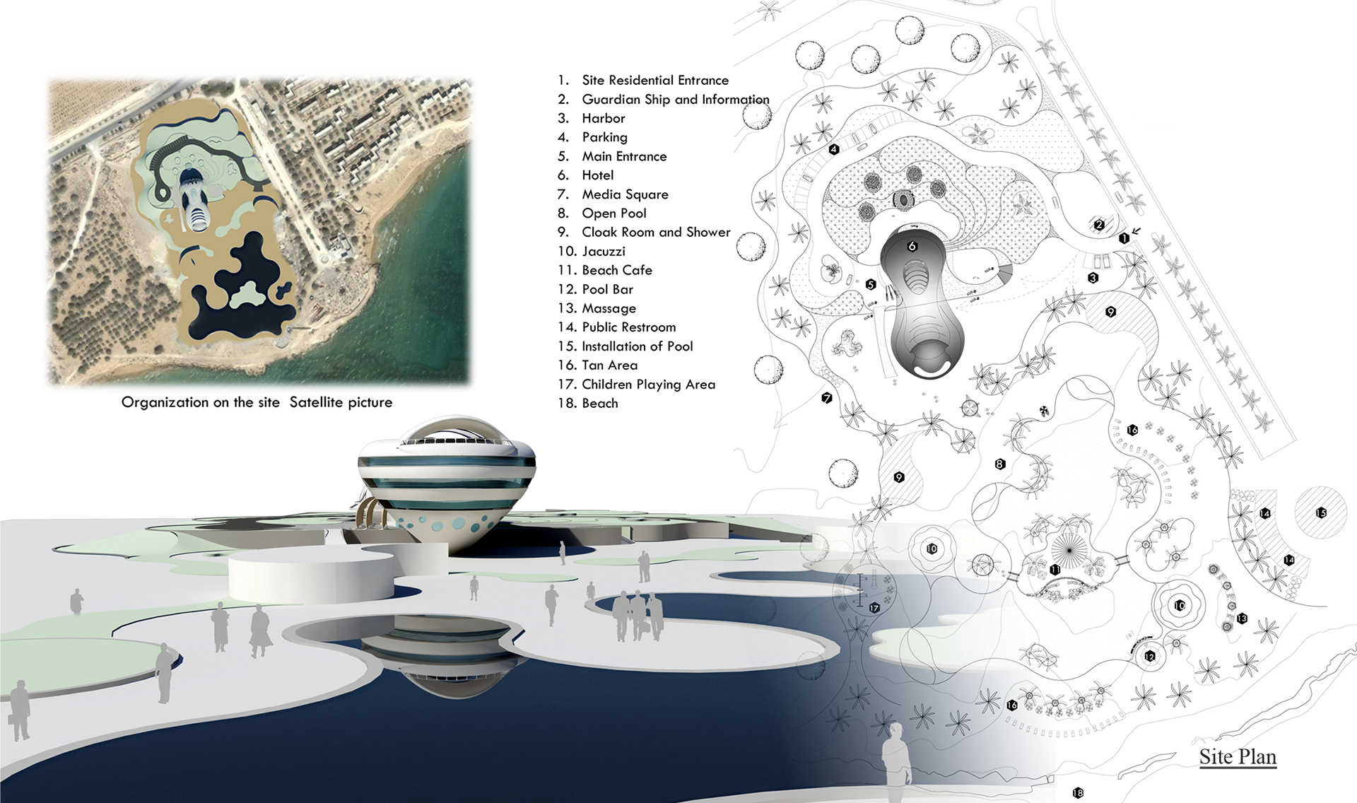 Site plan and the location of building towards shore