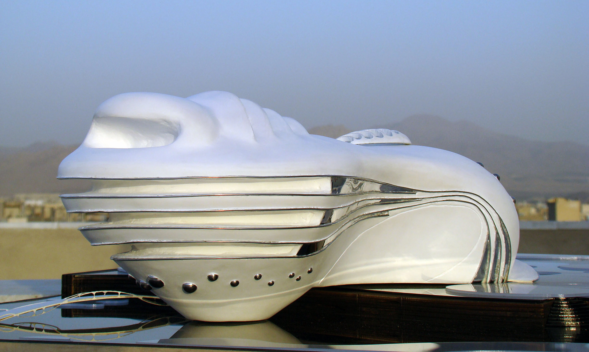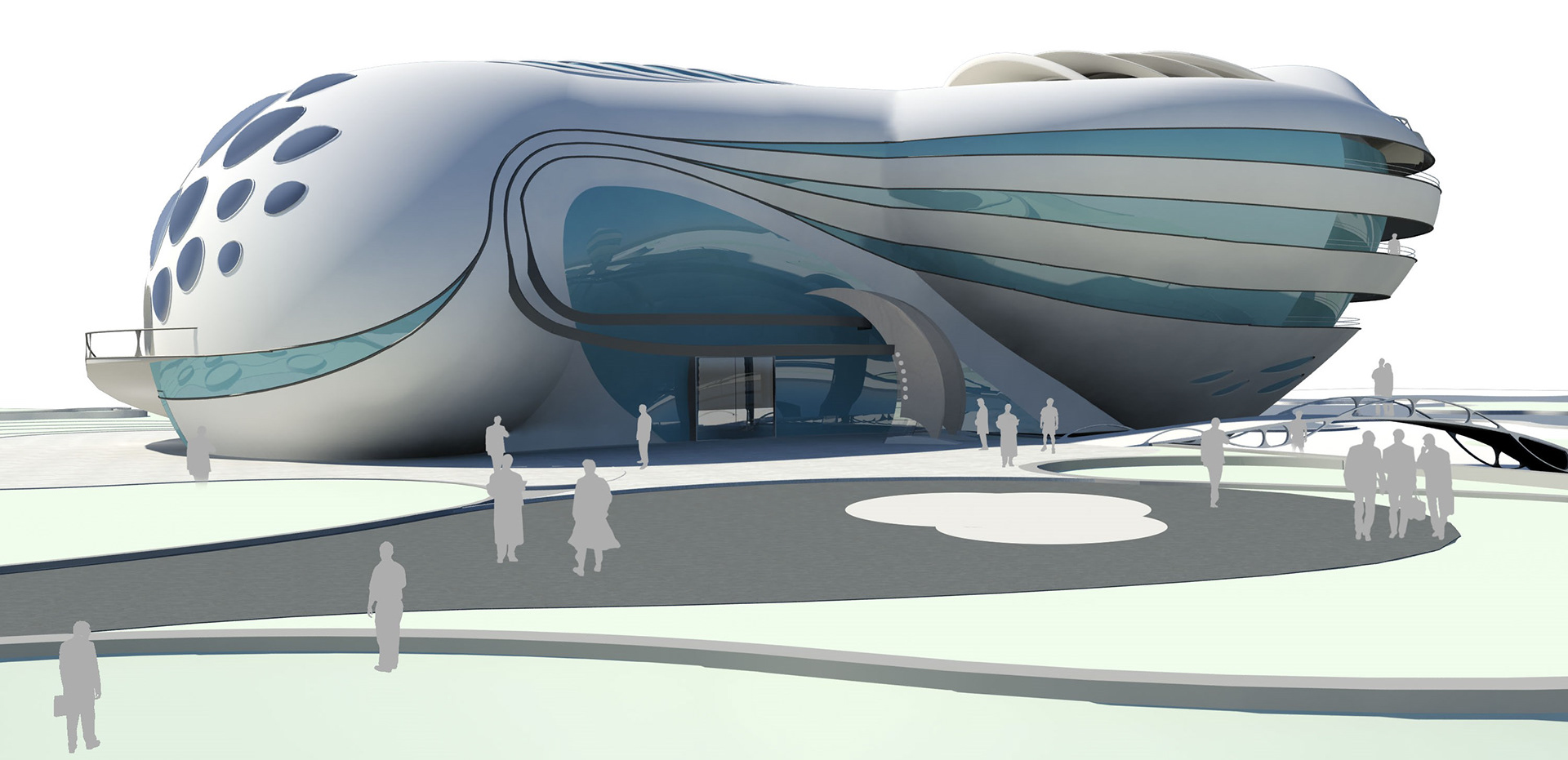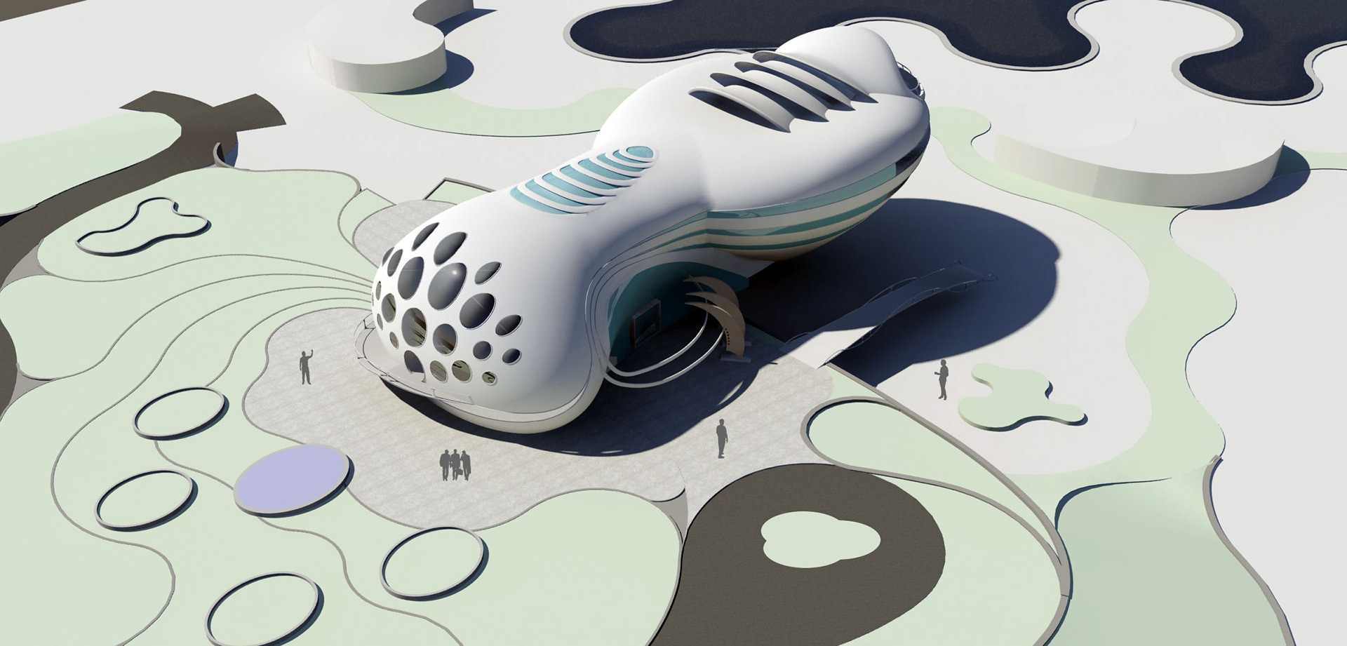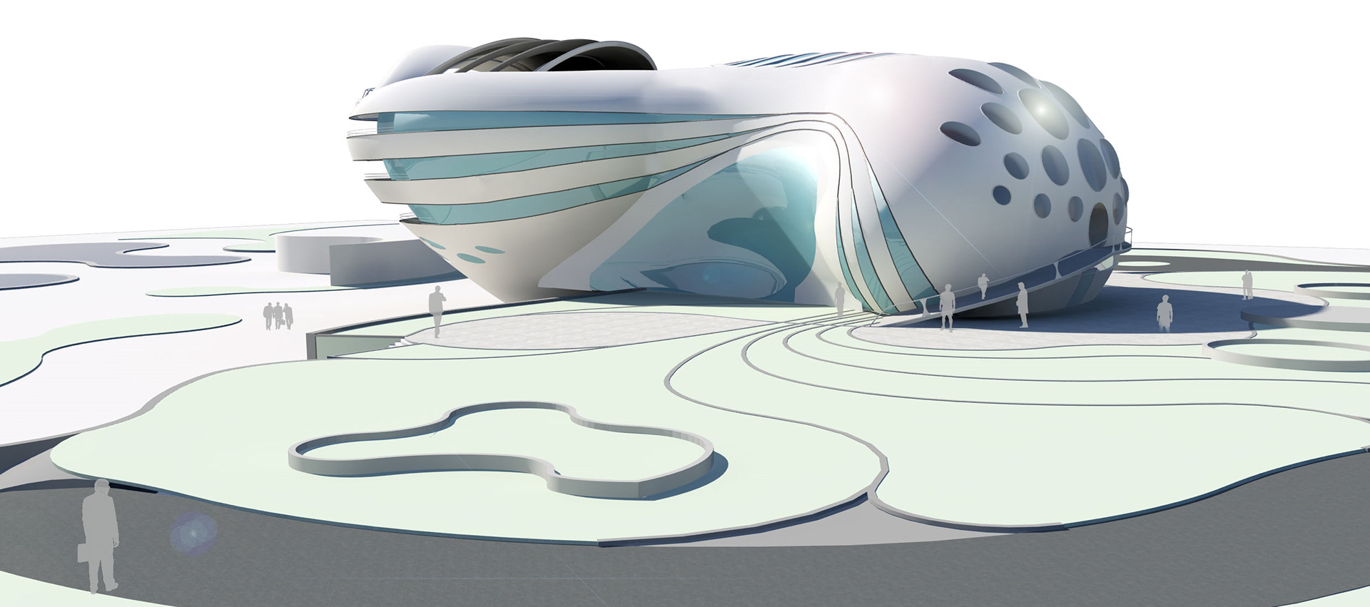 Since the project is coastal with hot and humid weather and the dominant wind blowing from Persian Gulf, volumes are shaped aerodynamically in which the air can be ducted easily and cause the least wind friction. Also, the light reflection reduction and creating twilight on curved planes that absorb less sun heat energy are considered.