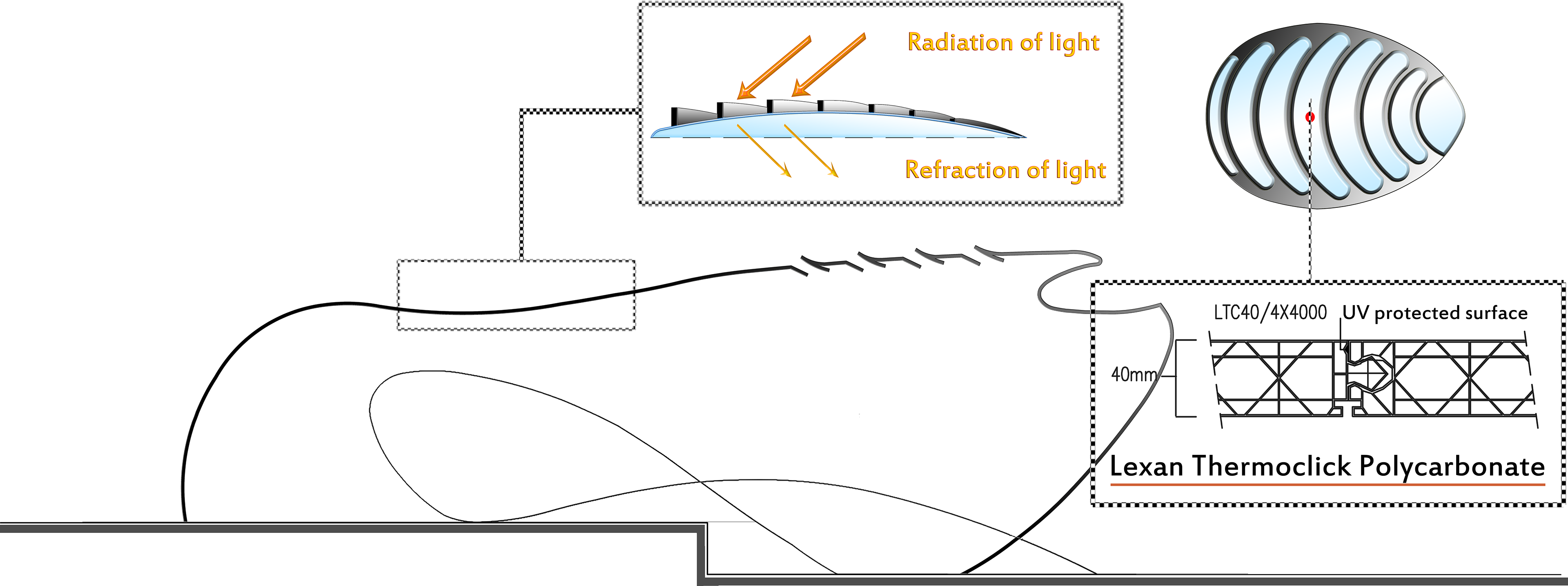 Lexan Thermoclick Sheets which are used in central facade openings provide energy efficiency such as: UV protected outer surface, light transmission and light diffusion properties, thermal insulation properties, high impact strength and breakage resistance along with simple installation.