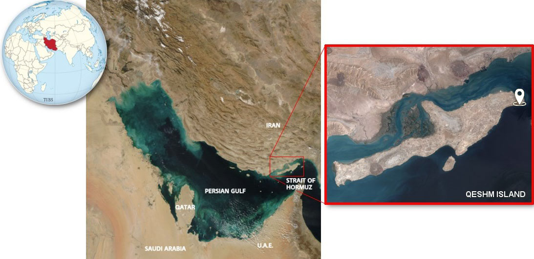 Qeshm Island, Southern Iran. Sources: NASA, TUBS
